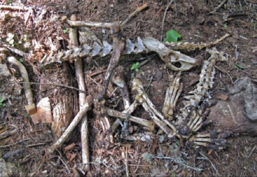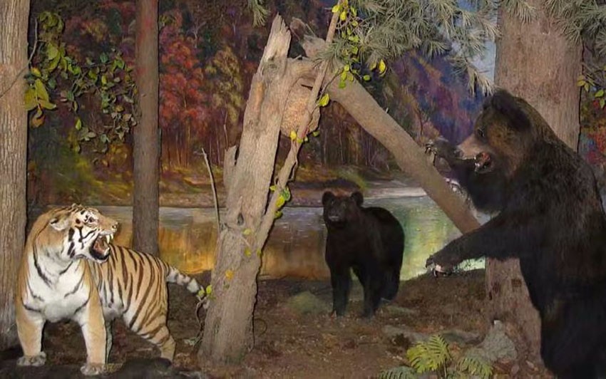 后来,来自俄罗斯科学院的研究员塞里奥金,在前往阿林考察时,在树丛中发现了一些被棕熊啃食过的老虎遗骸。通过对周围发现的棕熊粪便的化验,确实也发现了残存的虎毛。当然,这样的证据只能说明,棕熊曾经吃过老虎,并不能直接说明是棕熊杀死了这头老虎。