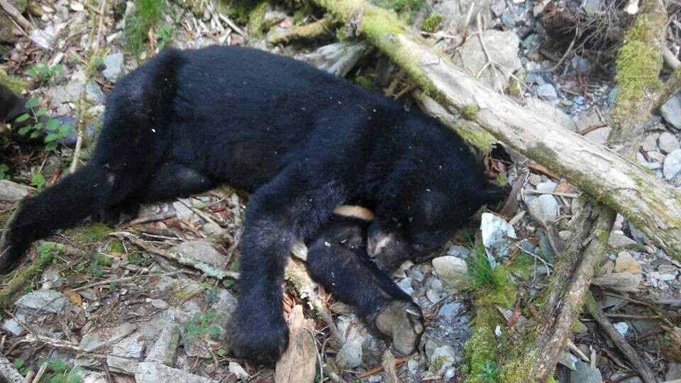 当研究人员根据红外线摄像头反馈的实时数据赶到时,一切都已经晚了。除了能看到失去部分身体的小熊残骸,研究人员还发现了三处来自老虎的卧迹。说明老虎在杀死黑熊并进食后,还趴在附近消化了一番。