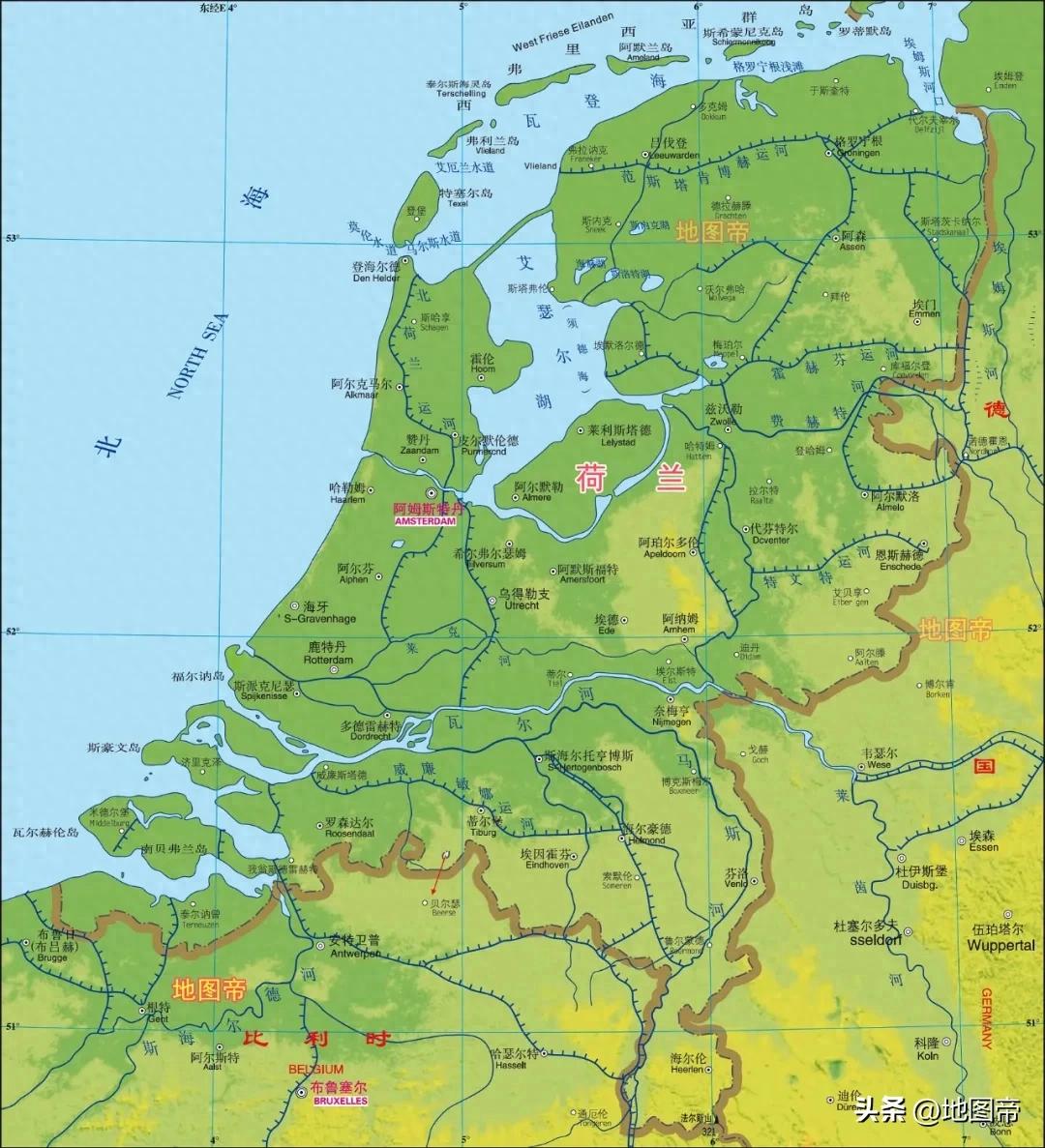 荷兰海岸线有1075千米,平均海拔约2米,24%的面积低于海平面,1/3的面积仅高出海平面1米。荷兰筑坝为堤阻隔海水倒灌,同时将内河水流抽出。如果三个月不排水,荷兰的水位会上升1.5米。