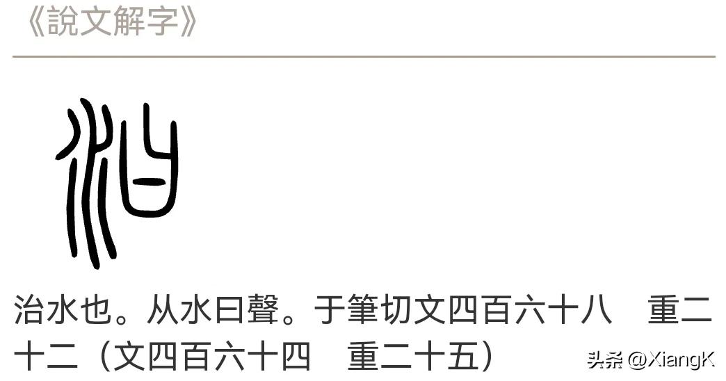汩「说文解字」:治水也。从水曰聲。于筆切文四百六十八 重二十二(文四百六十四 重二十五)