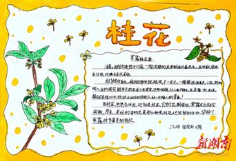 外婆家门口有一棵年龄很大的桂花树,约有四层楼那么高。每到秋天,那棵桂花树会开出很多的桂花,远远望去,桂花树上满是淡黄色的花朵,像长出的一颗颗小星星,又像一个个活泼可爱的小精灵,在树上快乐玩耍。