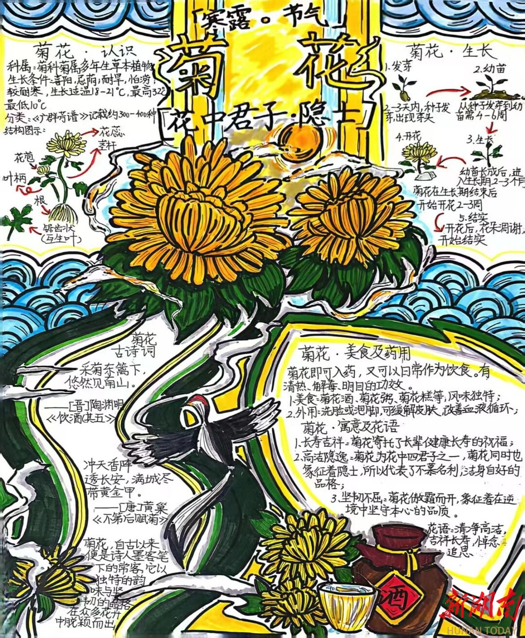 最近新学了白居易的诗:“耐寒唯有东篱菊,金栗初开晓更清。”寒露一到,风里都裹着凉丝丝的劲儿,园子里的月季、茉莉早就蔫了花瓣,只有菊花一点儿不怕冷,热热闹闹地绽满枝头,活像院子里站岗的“小勇士”,连花瓣上沾着的寒露,都成了它们的“小勋章”。