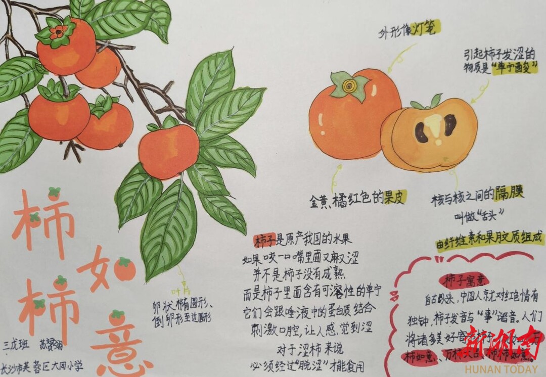 周末,卖柿子档口的老伯伯一边摆柿子一边唱:“今日寒露,好柿成熟。”我精心挑了五个最红最圆的柿子,用纸仔细包好。一进门,爷爷看见我手里的柿子,眼睛一下子亮了。黄昏,我和爷爷分享着甜甜的柿子。早秋的风凉飕飕的,我心里却暖烘烘的。