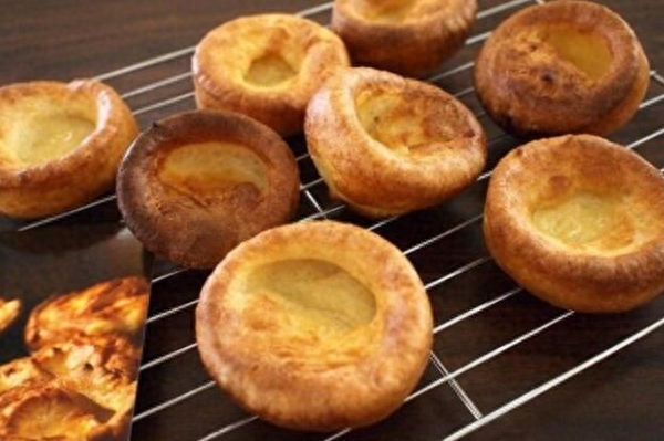 8、约克郡布丁:约克郡布丁是英国人周日晚餐的重要组成部分,多为烤牛肉的配菜,以它独特的牛肉香味闻名世界。