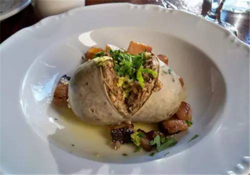 这道菜也是苏格兰的国菜,光听名字仿佛很美味的样子,端上桌的样子虽然像一个巨大的塞满了东西的气球,但也还凑合,可一旦切开来看,英国首席黑暗料理的名头就跑不脱了!羊肺、羊胃和羊心切碎,与洋葱、胡椒、肉蔻等配料混合后填进羊肚里,与燕麦一起煮制而成,切开的一瞬间,能让密集恐惧症掀桌子。