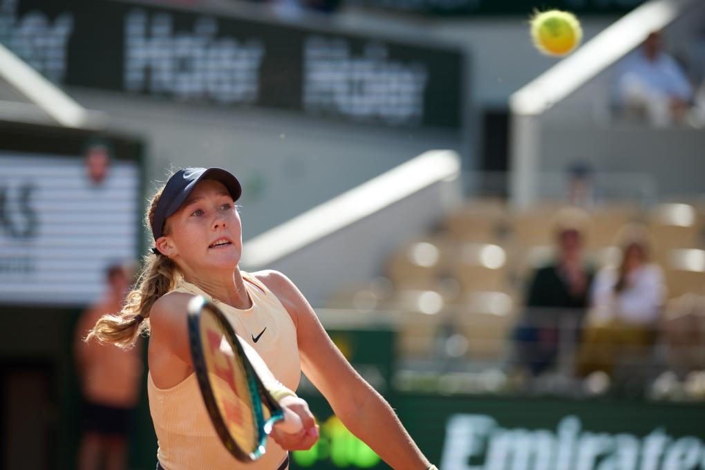 6月6日,米拉·安德烈耶娃在法网女单半决赛中。新华社记者 孟鼎博 摄