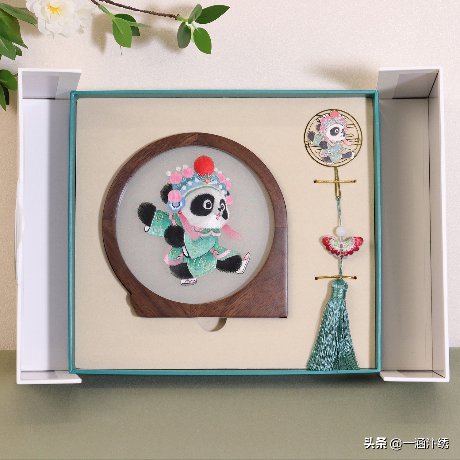 戏曲熊猫双面绣摆件