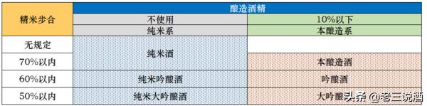 另一个维度则是在原料中添加酿造酒精。只能添加总量不超过酿造用米重量的10%,超过的话只能作为普通酒。