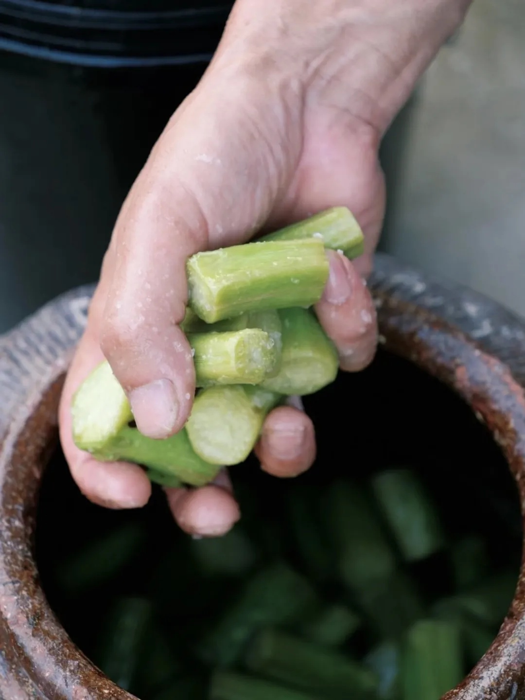 苋菜股作为著名腌菜的一种,在台州人的生活中占据着重要地位。过去一到冬天,蔬菜产量骤减,家家户户都流行在自家缸缸罐罐里腌制蔬菜,解决“下饭”的问题。
