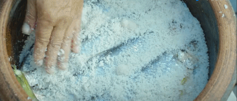 每年农历四月,舟山人的餐桌上就多了一道三抱鳓鱼。经过历代渔民的不断探索,腌制方法从一“抱”到二“抱”,最后到第三“抱”,连续三次的盐渍,一定时间的腌制,使三抱鳓鱼“腌而不咸、色泽金黄、口味醇香、营养丰富、干燥挺硬,久存不腐”。