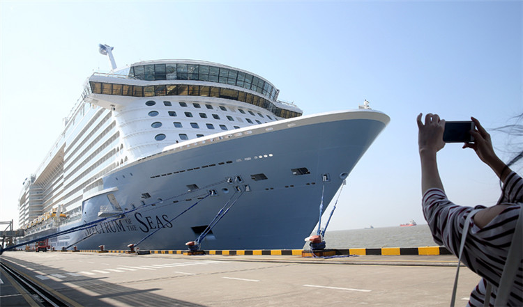 资料图片:2019年6月3日,“海洋光谱号”邮轮靠泊上海吴淞口国际邮轮港的庆典仪式现场|新华社发