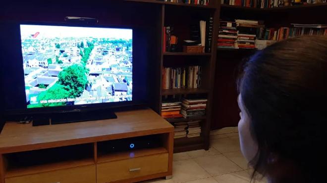 手机中播放的是新华社采制的反映中国与古巴携手抗疫的西班牙语微纪录片--《灭亡还是战斗?我们必胜!--疫情时期的英雄主义》。