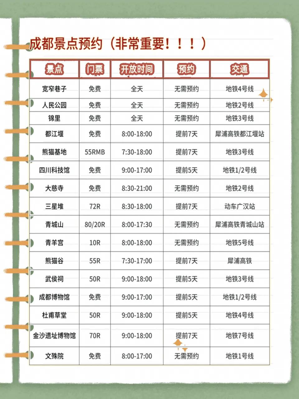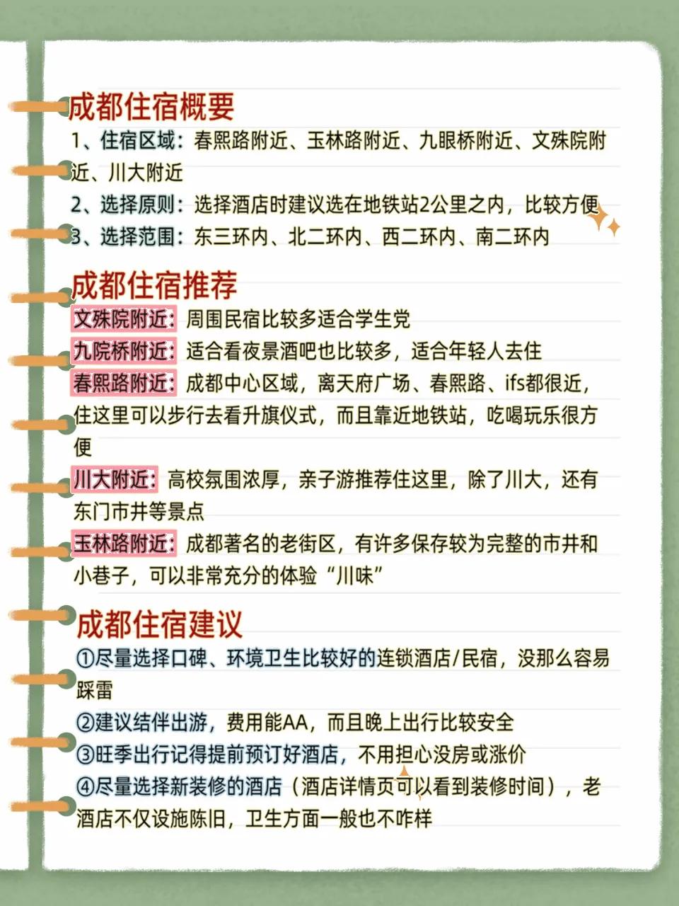 成都公交很便利住宿不用刻意选市中心,三环内地铁直达30分钟搞定。预约景点记得看好放票时间,熊猫基地20:30放票、三星堆20:00放票都是抢手货。旺季出行提前订好酒店,选择新装修的连锁酒店卫生环境更有保障。网约车很方便也可以选共享单车,成都路比较平且有自行车道很安全。