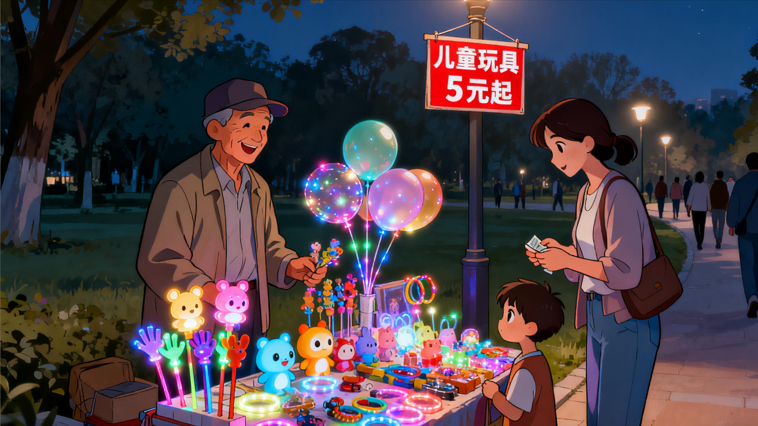 邻居王哥失业后,用 500 块进了儿童发光玩具,在公园门口一晚上挣 300 多。选品别跟风网红款,刚需品更稳:夏天卖冰粉、冬天卖烤红薯,学校门口卖文具零食,都是不愁卖的路子。