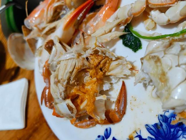 他家的最大亮点是食材,首先他家的食材特别新鲜,特别是各种海鲜,下锅的基围虾都是活蹦乱跳的自己跳进锅里去,螃蟹又大又肥也是活着下锅。
