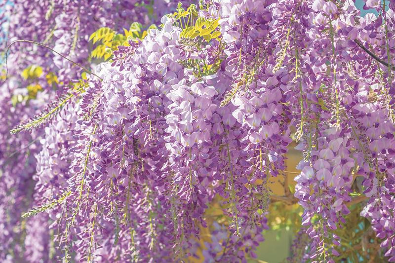 推荐词紫藤树枝叶浓密,花开时节长长的花序随风起舞,犹如紫色飞瀑。紫藤花朵密繁,果实累累,象征多子多福。中华大地上不乏千年古老紫藤,紫藤长寿又多子,赢得历代人民喜爱。近年来,我国推进美丽中国建设进程中,一些地方新建的紫藤长廊,成为非常独特的景观,让欣赏紫藤者流连忘返,也成为网红打卡地。树木档案紫藤,蝶形花科紫藤属藤本植物。小枝被柔毛,小叶卵形、长圆形或卵状披针形,长4.5—8厘米,先端渐尖,基部圆或宽楔形,幼时两面密被平状柔毛,老叶近无毛。花序长15—30厘米,花梗长1.5—2.5厘米,花序轴、花梗及萼均被白色柔毛;花冠紫色或紫堇色,长约2.5厘米。果长10—15厘米,具喙,密被黄色茸毛,木质,开裂。紫藤花朵密繁,色彩艳丽,历代诗人吟咏紫藤花,画家倾情绘紫藤花姿,医家用紫藤疗疾。灾荒年间,人们摘紫藤花充饥;和平时期,艺术家借紫藤花歌颂美好生活新时代。紫藤树已伴随华夏儿女数千年,由紫藤诗文、绘画、医药以及紫藤置景等构成的紫藤文化,是中华文化的重要组成部分。诗文赞美紫藤花