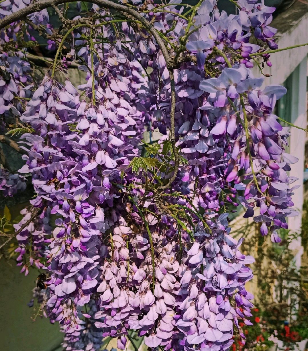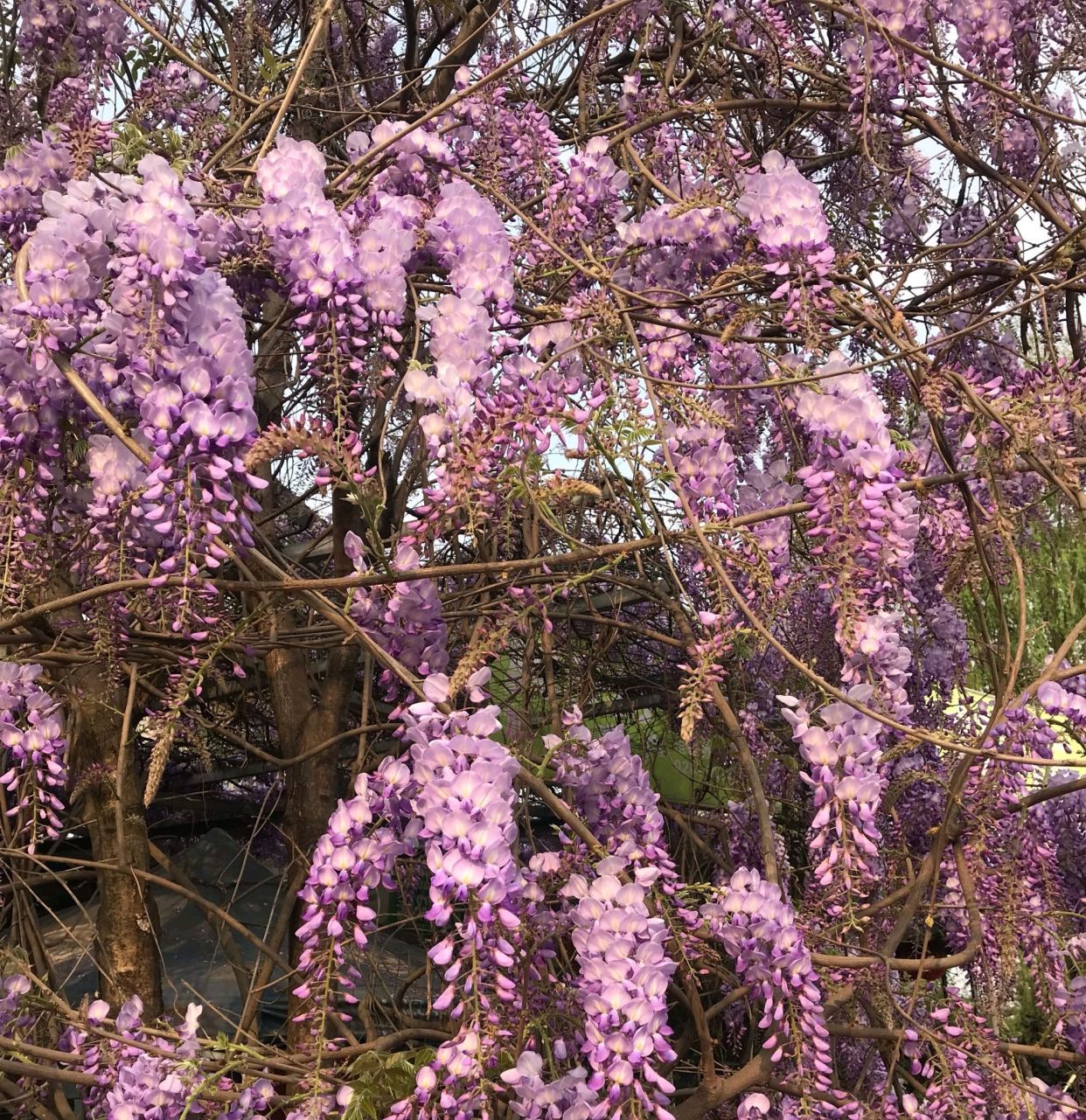 看图片,是不是很喜欢,紫藤也是属于先花后叶,然后一边开花一边长叶,每年的这个时候,紫藤开花算是一景了。