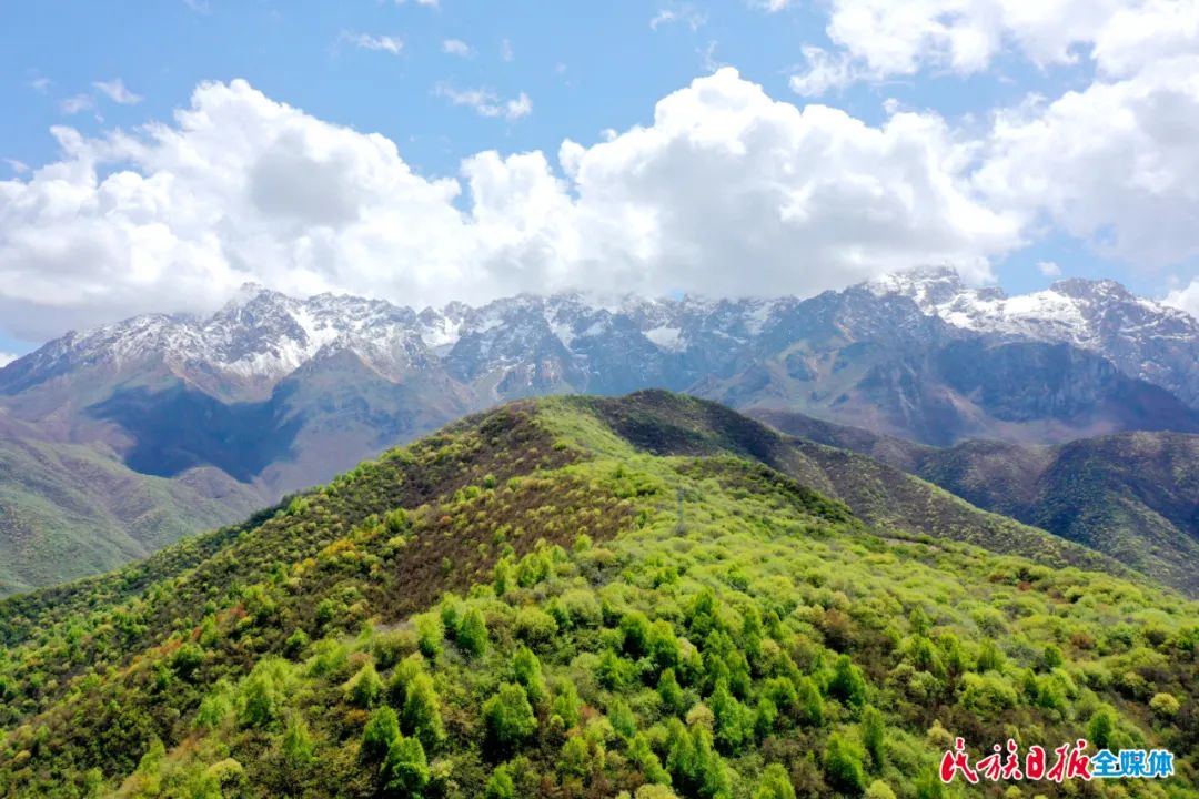 巍巍太子山,山岔起伏,郁郁葱葱,峰高云低,气势雄宏。 站在太子山脚下,抬起头就能看见山顶白雪皑皑,熠熠生辉,裸露的山骨终年积雪不化;山下树绿花开,青山碧水,风景如画,换个视角,太子山就有了不一样的美丽,顿觉远离了尘世喧嚣,置身于大自然的怀抱。记者:冯元鹏 马正兰