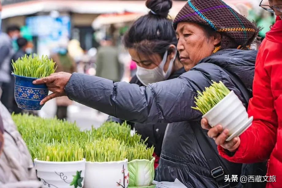 青稞作为西藏的主要农作物之一,青稞苗也是藏历新年必备的年货。在藏历新年期间,家家户户都会把青稞苗放在家里的显眼位置,祈求新的一年风调雨顺,生活美满。