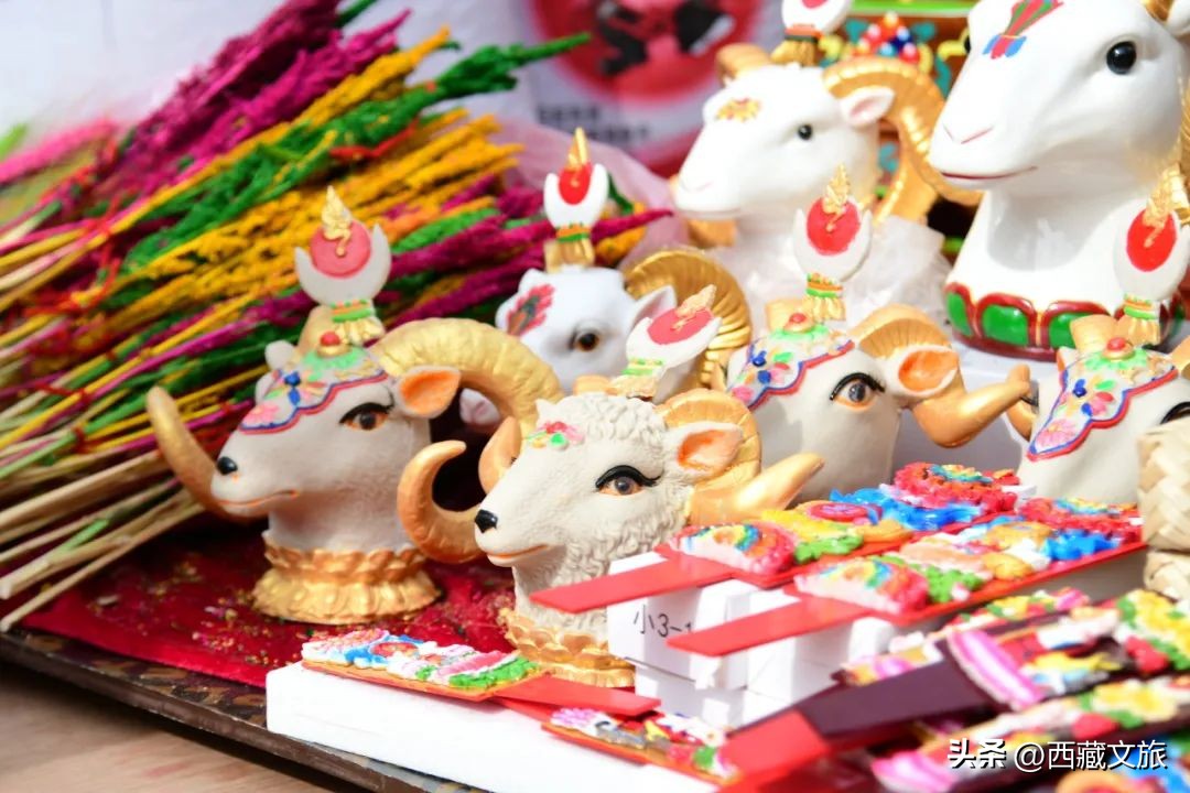 一种用陶瓷、石膏等不同材质制作的塑彩羊头,也叫做“吉祥羊头”,藏语发音为“隆果”,在藏语中,“隆果”正好是藏语新年的谐音,人们认为“羊”是吉祥之物,同时也祈盼五谷丰登,六畜兴旺。
