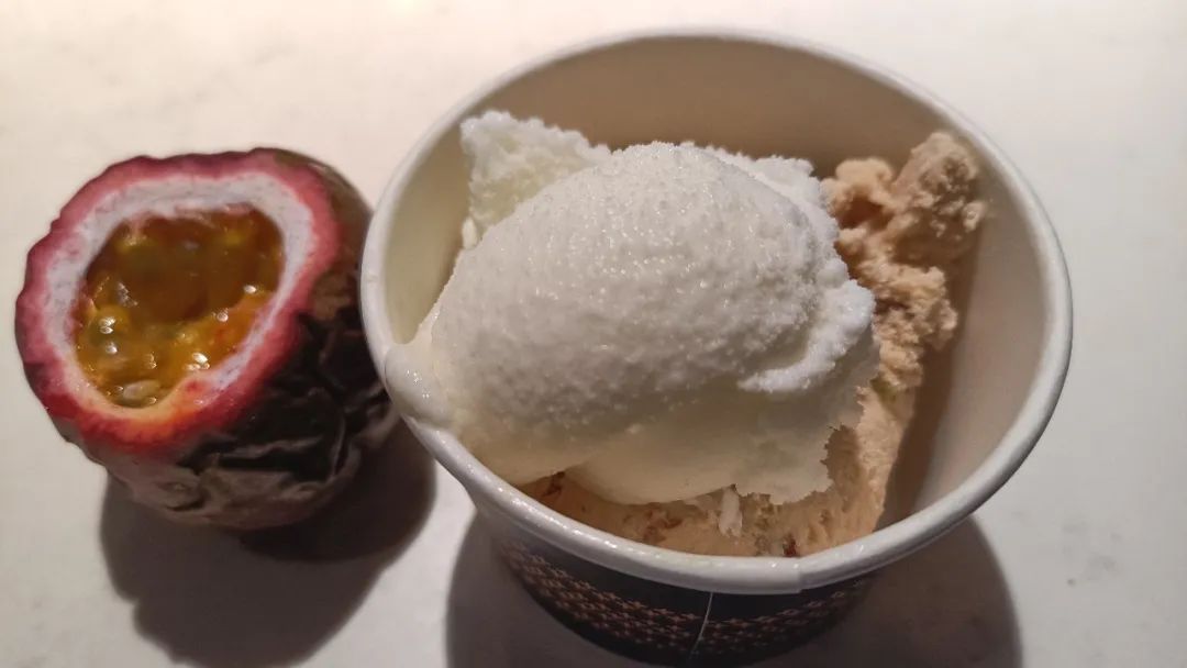 冰激凌本身不算惊艳,但水果区有百香果,把百香果浇在冰激凌上边,超级棒。