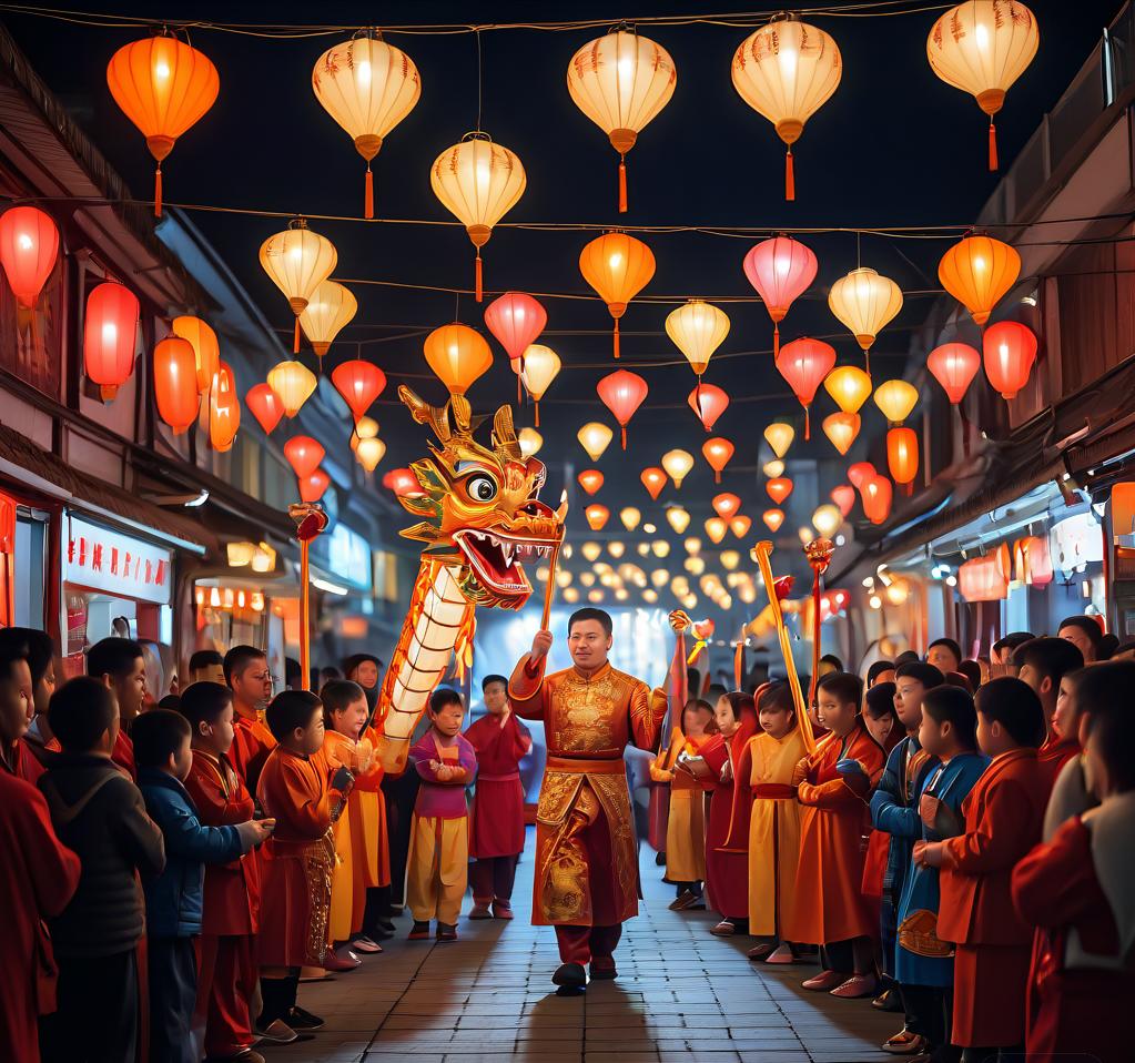 习俗:大扫除,寓意扫除旧岁的霉运与不顺,迎接新年的好运与幸福。除夕之夜,全家人围坐一起享用丰盛的年夜饭,长辈会给晚辈发放压岁钱,寄托着长辈对晚辈的关爱与祝福。春节期间还有舞龙、舞狮、逛庙会、赏花灯等传统活动,人们还会贴红灯笼、贴红对联、放鞭炮,以此驱赶“年兽”,祈求来年平安吉祥。这些习俗共同庆祝新年的到来,祈求来年的平安与吉祥。