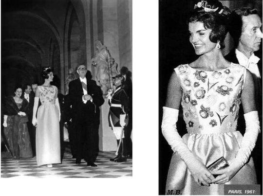 肯尼迪夫人身着纪梵希设计的象牙色的丝绸裙子