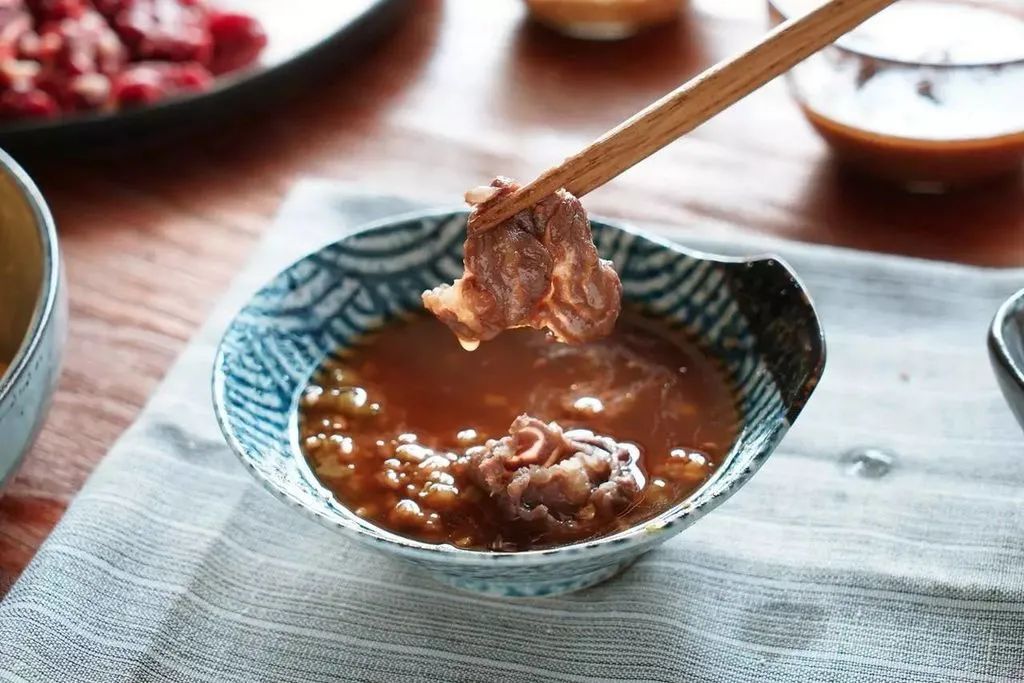 尽管随着时代改变,大骨高汤、油辣红汤等风味汤底也开始在北京流行,但是,在蘸料这件事儿上老北京人依然绝不妥协。浓郁的芝麻酱加上韭菜花,再来点腐乳汁儿。若是再配上酸甜的糖蒜瓣和鲜炸的辣椒油,真真儿是妙极了!