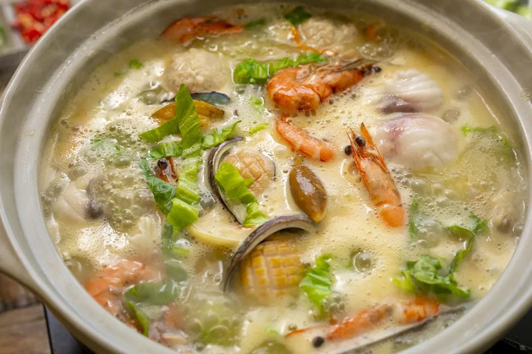 港式火锅也被称为“打边炉”,汤底加入虾米、干贝等海鲜还有白萝卜等的高汤。涮品也以海鲜类食品为主,比如虾滑、墨鱼丸、鲜鱼片等,营养丰富,可以提供人体所需的蛋白质。