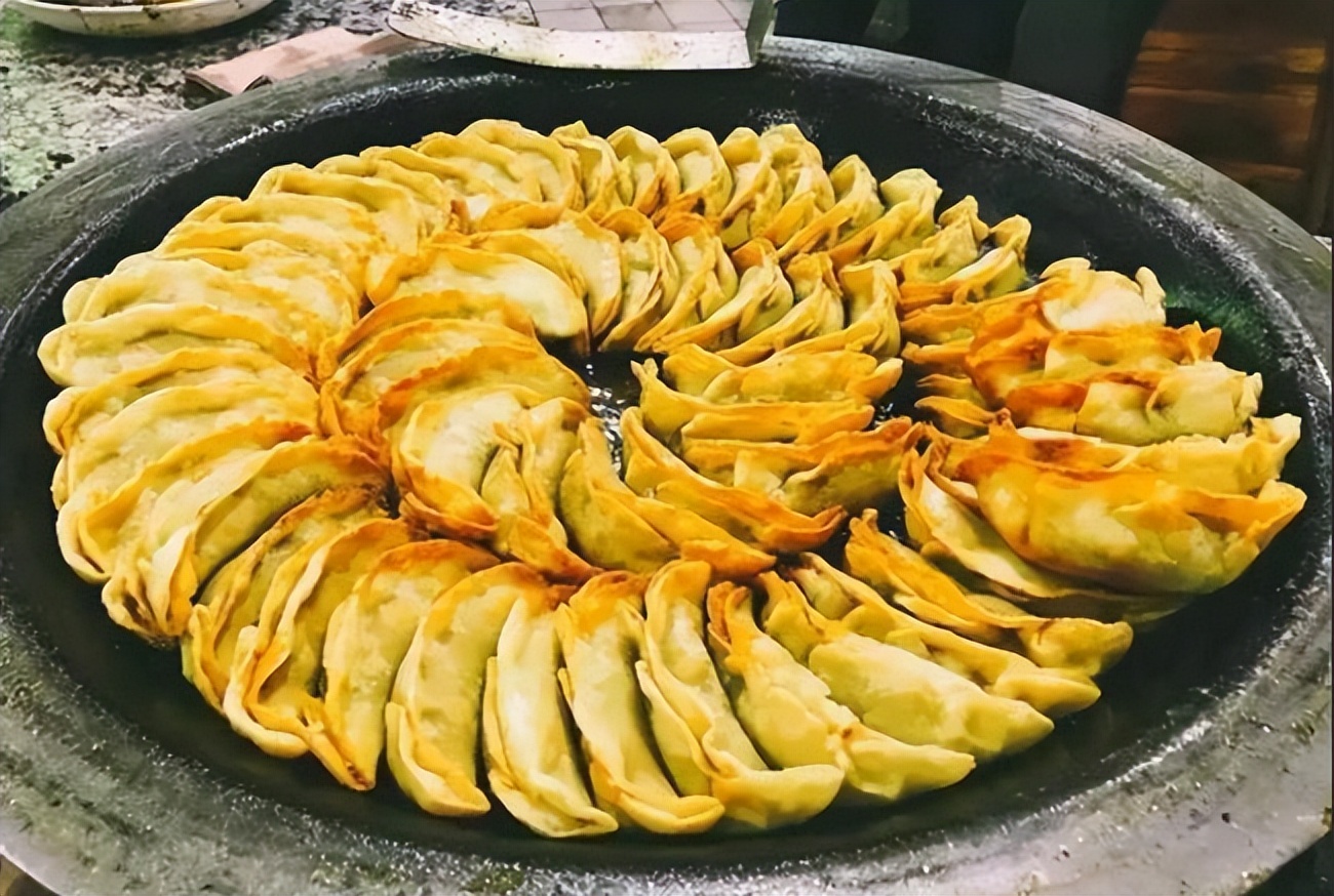 第三道是牛肉锅贴,外皮煎得脆生生的,咬开里面有汤汁,得小心别烫嘴。肉馅是牛肉的,带点甜口,吃起来不腻。夫子庙旁边的蒋有记能吃到,或者老门东的李记清真馆,后者要早点去,不然得排半小时队。一两有 4 个,大概 12 块,一般人吃二两就够了,吃多了会有点腻。