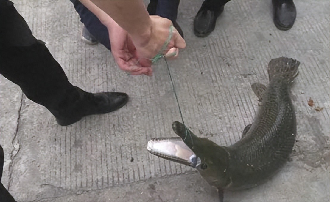 前些天,在河南平顶山的一处公园人工湖里,一些在湖面上划船的游客,都看到水里有一个奇怪的巨大身影出没,随后,公园内的工作人员进行捕捞,结果竟然真的从里面捞到了一条很奇怪的鱼,体长近1米,嘴巴很长,最里面长满了锋利的尖牙,而且具有很强的攻击性,这也让不少人都好奇,这究竟是什么?