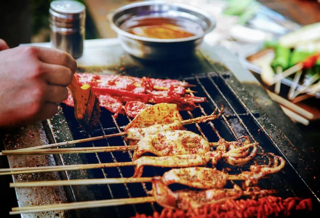 烧烤,真是个特殊的文化现象,从原始人使用火开始,它登上过皇族贵胄的宴席,高门大院里,琉璃世界白雪红梅,《红楼梦》里玉面粉琢的哥儿姐儿,干净清秀,又不少吃的,在哪里商量着要吃生肉。它也适用贫瘠荒凉的乡野,金庸武侠小说中风餐露宿的大侠们,如果落入窘境,那么必然是从周边打些野味做个原生态烧烤来填饱肚子的。到了现代,灯火通明的夜市里,烧烤从配汽水到配啤酒,从露天到店面再到露天,这是时代与成长的见证,哪座城市里没有个延续几十年的烧烤摊,几代人经营,连摊主家的家长里短都是半城人的下饭作料。烧烤的魅力在于把老少爷儿们都聚集在一起,热热闹闹,有肉有酒有人间。