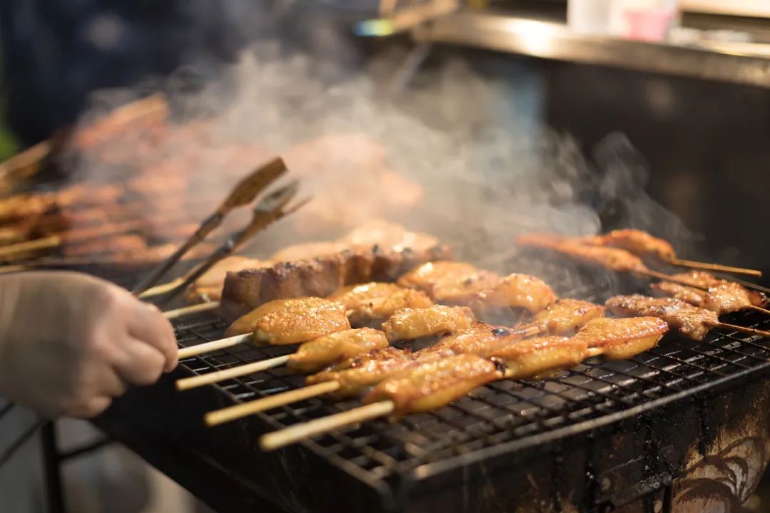 烧烤这事比较早,在《说文解字》里,“炮”的解释就是“毛炙肉也”,厨师旧称“庖子”以及陶器亦是因“炮”而得来。商代《诗·小雅》上,就有“有兔斯首,以燔以炙”的诗句,证明我们的祖先在创造“煨”法的同时,已有将肉食加工从炭灰中移到火焰上的想法和做法。但由于当时的技术条件落后,“炮”法因非常适合部落社会的实际需要而成为当时主流的熟食方法。那么,什么是“炙”?许慎《说文解字》中将“炙”字解为“从肉在火上”。段玉裁注:“有串贯之加火上也”。所谓“炙”,就是用钎子一类的东西,把肉一块儿块儿贯串起来放在火上烧烤。