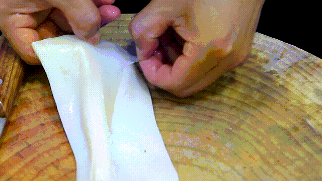 用淀粉锁住鱿鱼丝中的水分,这样炸出来的鱿鱼丝更加酥脆。